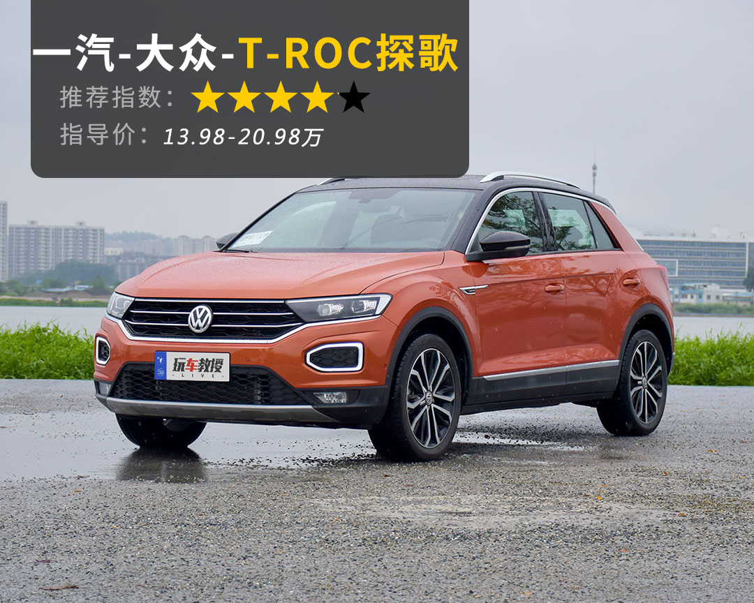 推荐理由:作为一汽-大众的第一款SUV,T-ROC探歌让人等得好苦。但好菜不算晚,即使市面上有很多好手。当然,对于探歌的质疑,消费者表示还是在价格方面上。如果以刚上市的价格,或者差不多的价格,进行购买的话,大部分消费者是很难高兴下手的。从产品实力来说,在探歌上见到了新元素,多个方面都有涉及,比如设计,双色车身让它有了新鲜感。大众所造的车,几乎都是热销车型,成熟的动力总成及生产平台是优势所在。针对于本土化,进行轴距加长,空间不会成为短板。不同于一些追求个性为主要目的的同级别车型,探歌还是注重实用性多些。后期辅以不错的市场优惠,T-ROC探歌终于突破了万辆大关。如果还不够味,那就选择顶配的四驱版本版吧。
