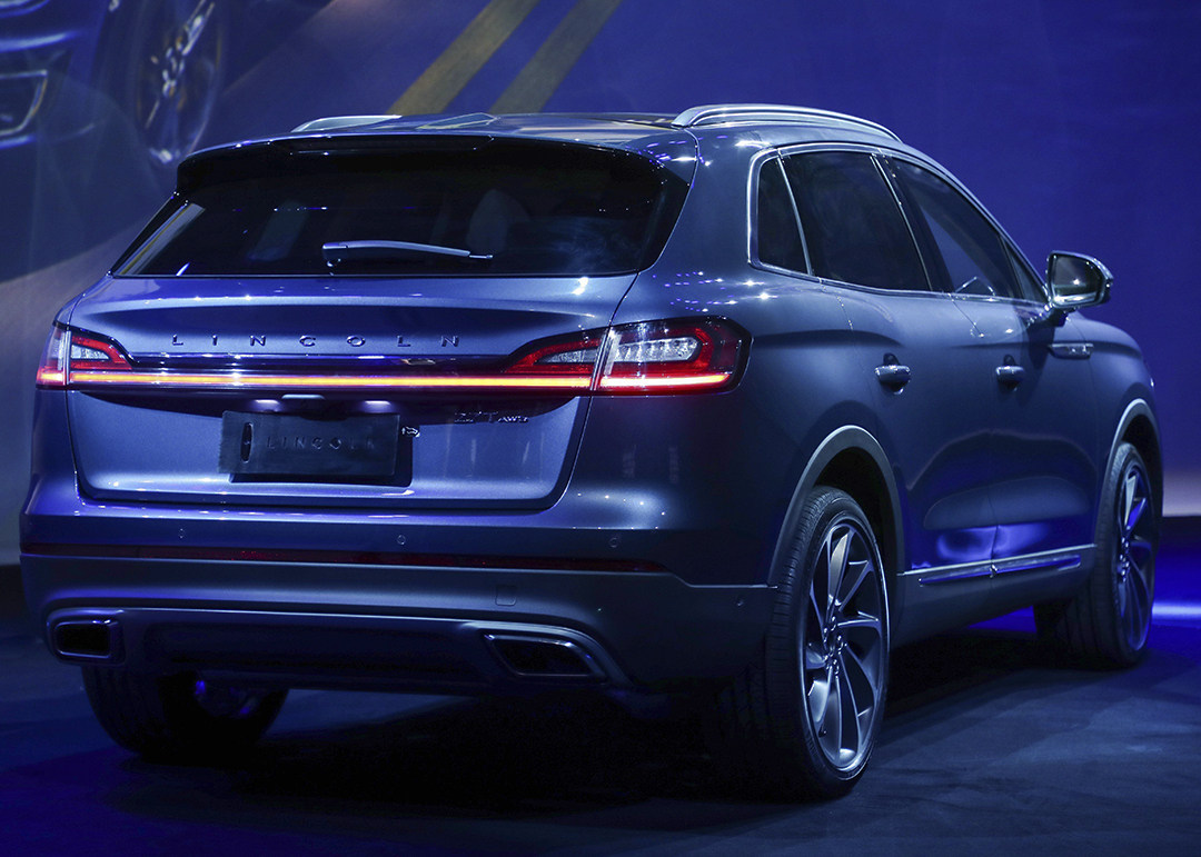 侧面来看,林肯航海家与现款MKX变化不大,依旧呈现出强烈的力量感;新车轮毂则以飞机涡轮发动机造型为灵感,尺寸最大达到21寸。而林肯标志性一体贯穿式LED尾灯拉宽了尾部的视觉宽度,让车尾看起来十分宽阔。