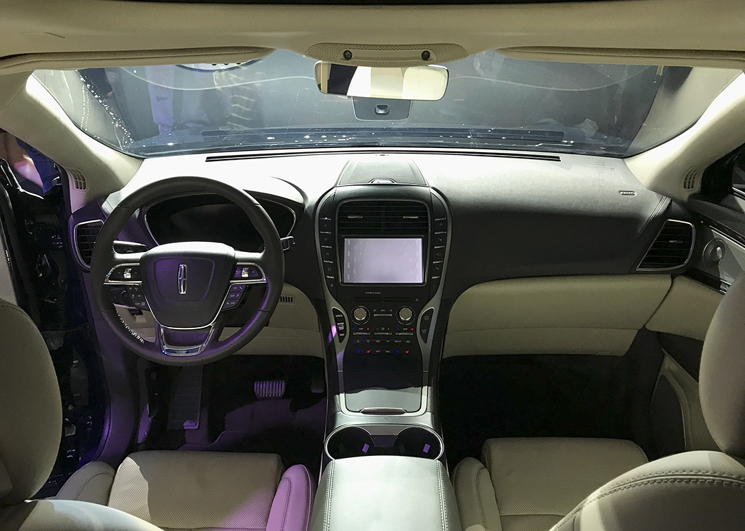 相比起外观造型的改变,林肯航海家的内饰则稍显无趣;因为与现款MKX基本一样,稳重的设计很好地保留下来,也延续了林肯经典的按钮式换挡方式。新车只是在方向盘和仪表盘等细节处做了更精致化的处理,如,加入了全液晶仪表,配备车载4G Wi-Fi和无线手机充电功能等,科技感比之前强烈了些。