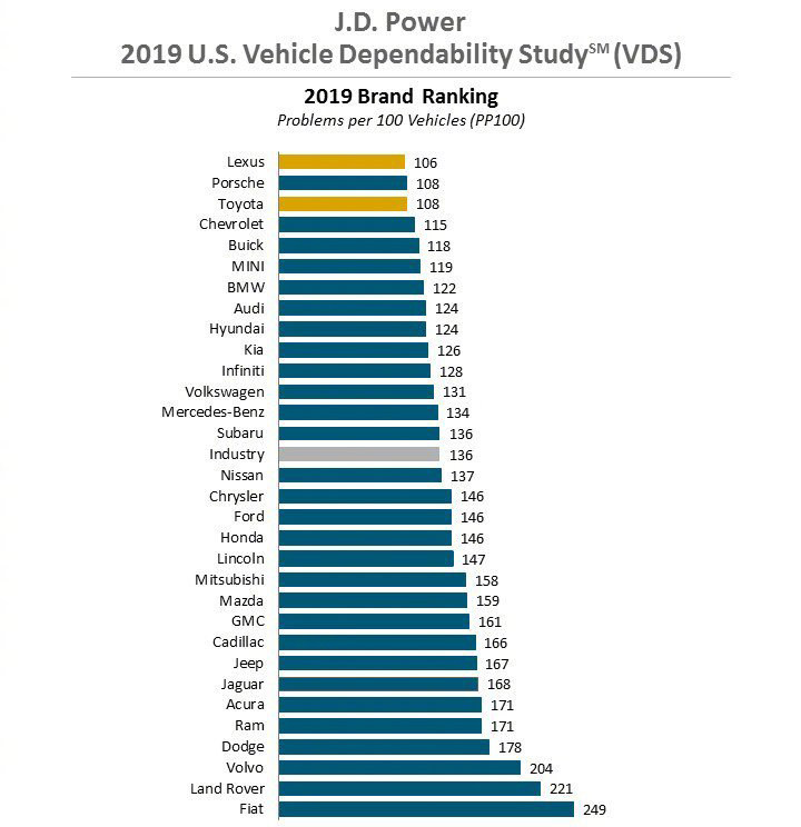 相信很多人都会参考一些测试、排行榜、研究报告等,譬如美国IIHS、Euro-NACP,再譬如前一阵子的JD Power,发布了一份2019年美国汽车品牌的可靠性报告,也就是说,哪些品牌最可靠、质量最好,看这份榜单就知道了。