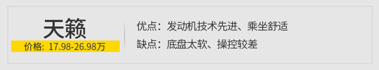 换代天籁用上了2.0T VC-TURBO发动机,这款发动机拥有可变压缩比技术,动力惊人的同时能保持十分低的油耗。即便配备了如此强劲的动力,天籁本质上还是那台十分舒适的B级车,操控注定与天籁无缘,而且天籁避震太软,容易顶到塔顶,降低乘坐体验。划重点,只需21.58万起,即可买到天籁的2.0T版本。