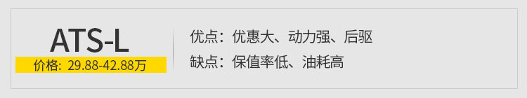 文章单里唯一一台豪华品牌的B级车。别看ATS-L的标价高,优惠过后,20-25万可以买到中配以上的车型。20多万能买到一台280匹马力,8AT变速箱的后驱车,还是豪华品牌,他的优缺点真的有那么重要吗?