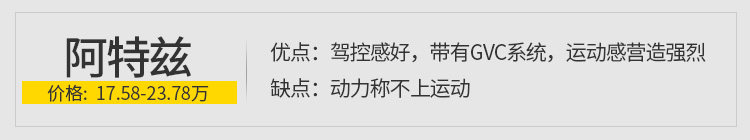 阿特兹是一直走运动路线的车型,阿特兹的优点在于长处在于人车合一的驾控感,油门和转向都十分线性,zoom-zoom的声浪对驾驶氛围营造很好。GVC系统的加入会让大家加深对阿特兹操控好的印象。大家会认为阿特兹空间小、隔音滤震一般。但经过教授实测,阿特兹再这方面其实没有比同级对手甩开太多。