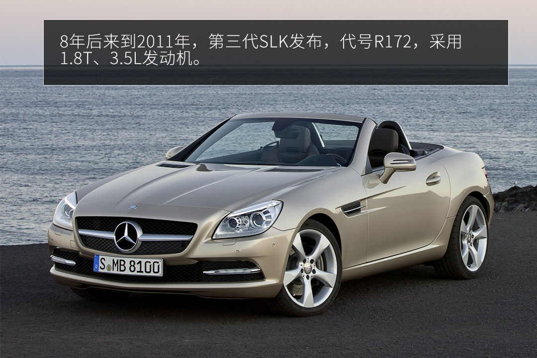 8年后来到2011年,第三代SLK发布,代号R172,其AMG 55车型采用新的V8 发动机,最大马力可达416匹,最大扭矩540N·m。