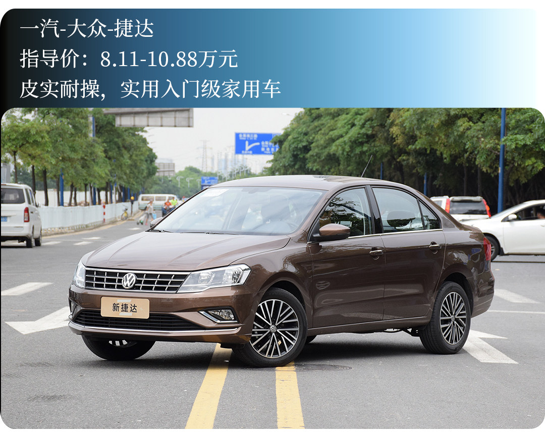 捷达这个名字已经在中国纵横几十年了!我承认它长得很普通、平台也老旧、动力也不猛,但胜在靠谱啊,行驶品质厚重、底盘扎实,妥妥的实用性选手。再加上,价格低廉,10万不到就到手了。最近听说捷达还在“汽车下乡”政策范围内,农民在乡村买辆捷达就更是划算了。