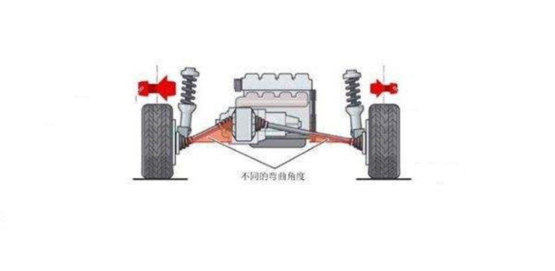 众所周知,大马力的横置前驱布局车型,在大脚油门的时候,会发生扭力转向的现象,也就是方向盘和车子都往一边跑的拽手现象,这是因为横置布局的车型的左右驱动半轴是不等长的,而且其中一半会比另一半长很多,大脚踩油门时,长短半轴各自接收到的瞬间扭力不一样,半轴短的一侧车轮扭力大,而半轴长的一侧车轮扭力小,结果是,一侧车轮的转速要大于另一侧车轮,因此车辆就会跑向半轴较长的一侧,这个就是扭力转向发生的根本原因。