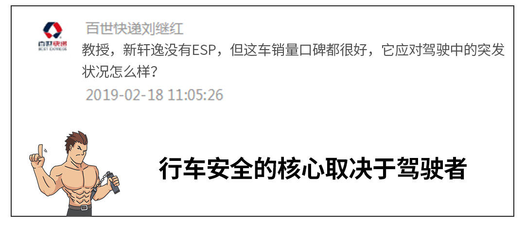 新轩逸不是没有车身稳定控制(ESP)而是没有实现全系标配,在低配车型上确实没有。相信谁都不想在紧急时刻去考验自己的驾驶技术,教授参加过车企的活动,体验过安全气囊爆出的感觉,给安全气囊抽在脸上,最直观的感觉就是给人抽了一耳光。这还是在没有碰撞,完全安全的测试条件下。至于实际道路上的体验,个人希望永远不要遇到就好。