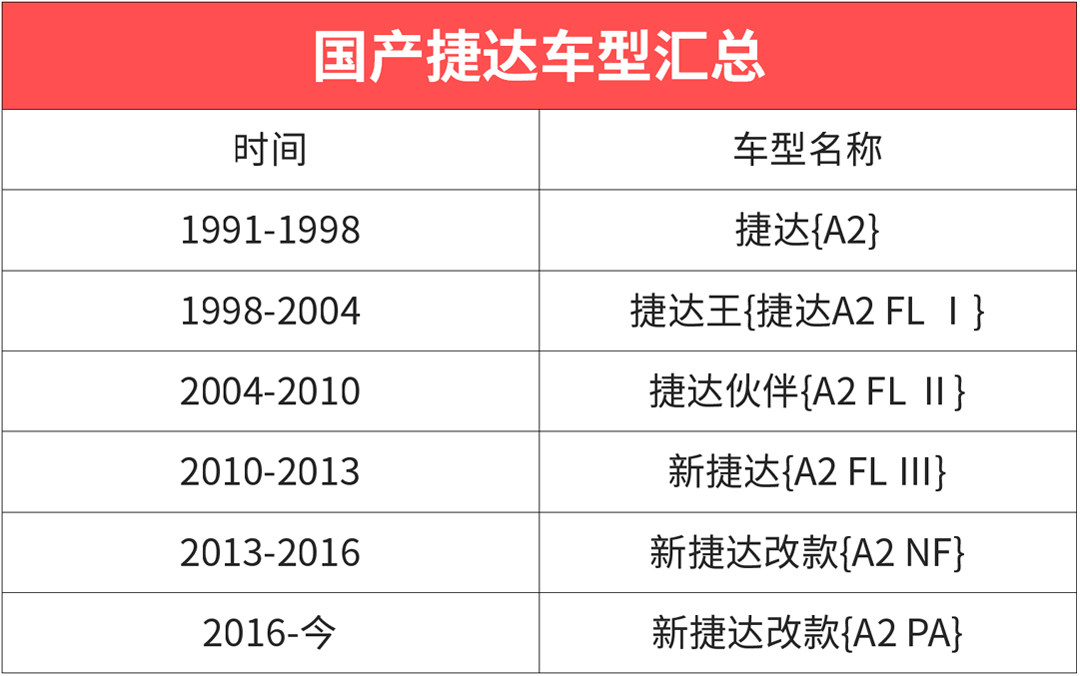 我做了一个捷达车型的汇总表,从91年到98年,捷达一直是照搬海外的设计。一直到98年,一汽大众依照中国特色对捷达进行改造,捷达王由此诞生。时至今日也许你会嘲笑捷达老旧的平台,但在当时,捷达王是同级别车中第一个配备ABS、第一个配备自动变速箱、第一个实现电喷化、第一个配备双安全气囊的车型。捷达王的多个第一也让它成为了消费者购车的首选,只要有闪光点就不怕被埋没。