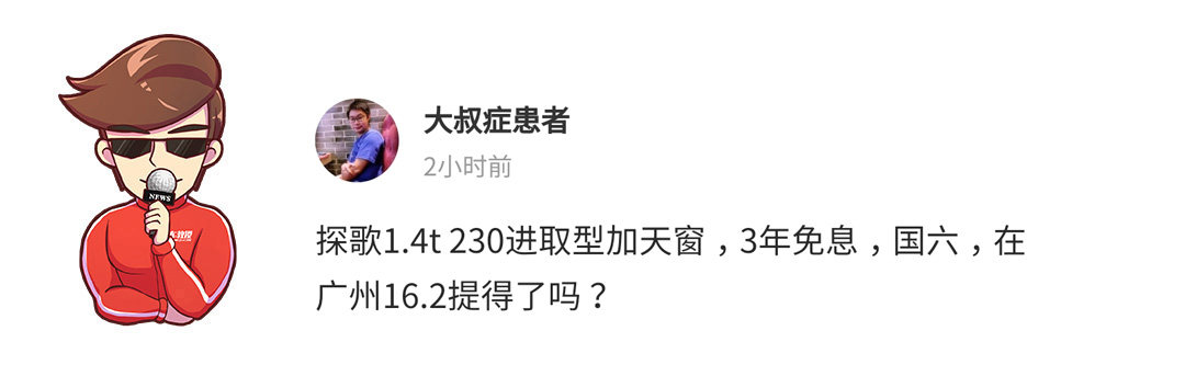 探歌是大众多年来难得的一款如此年轻充满活力的SUV,在上市前有着非常不错的热度,但众所周知大众的车型,特别是热门SUV也很难有优惠,但是年前我们玩车教授团队有在广州当地的4S店做过优惠调查,探歌普遍优惠2万元左右。至于230TSI DSG两驱进取型如果加上天窗,三年免息,16.2万是落地价的话,值得入手。