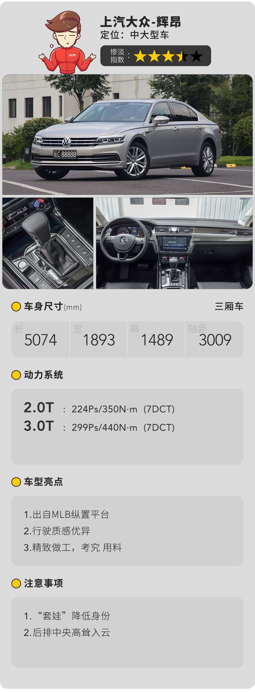 “不怕奔驰和路虎,就怕大众下面带字母”这一段子的来源是大众旗下的顶级轿车辉腾。基于宾利飞驰平台打造、破百万的售价、出身于大众专门建造的“玻璃工厂”说辉腾是大众的顶梁柱怕是没有什么异议,而辉腾停产后小辈辉昂接过其衣钵,虽然不是出身于尊贵的“玻璃工厂,也没有百万级的身段但是辉昂的综合表现绝对是大众目前在轿车领域的最优者。最大的车身尺寸、诸如空气悬挂、电吸门、车载冰箱、副驾座椅后方的小桌板、头等舱级的二排头枕等高端配置全为辉昂专享、一流的做工+上乘的用料覆盖而成的内饰所产生的豪华感远不是其他大众系轿车能比的。