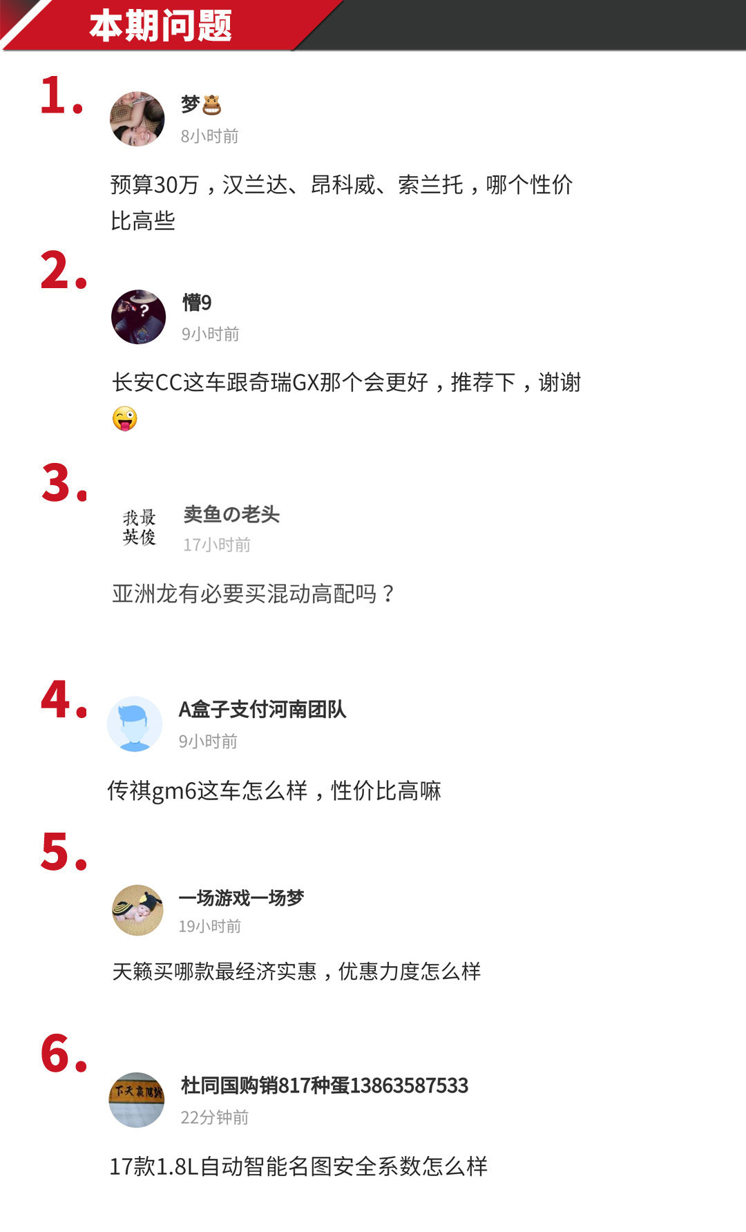 在网友问答栏目中教授将会在小程序-玩车问问里挑选6个问题进行回复,如果对购车、用车有什么疑问的话,欢迎点击下方玩车问问小程序,有许许多多非常厉害的技师为你解答喔!