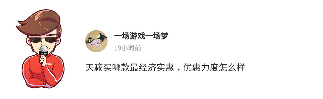 全新一代天籁已经上市,想要经济实惠,那必然是首选2.0L的车型,因为2.0T 的车型虽然性价比还不错,但是燃油经济性差一点,而且6.4秒的0-100km/h也怕很多人都用不上,2.0L的动力简单代步已经有余。最值得推荐的是次低配2019款 2.0L 舒适版,指导价为18.68万,带有倒车影像和分段式全景天窗,但目前基本没有优惠。虽然旧款天籁已停产,但如果在某些4S店还能找到2018款 2.0L XL 智进版的车型,18万能落地,也很值得入手,而且更符合经济实惠的需求。