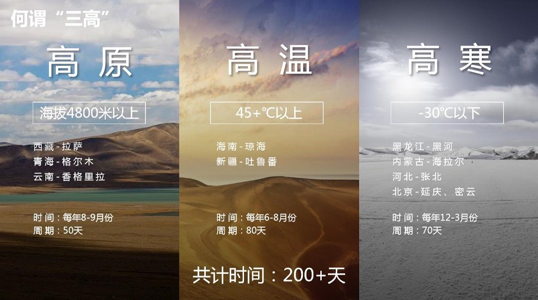 当然电池除了怕寒以外,还怕高温、高海拔,所以,北汽新能源会对旗下的车型进行“三高”试验,以提高车型在各个环境下都能有出色的工况,满足消费者的用车需求,而且北汽新能源三高试验并非政策强行规定,而是出于对产品各项性能指标的要求;高温、高原等教授日后再细说,今天只跟大家分享高寒这一部分。