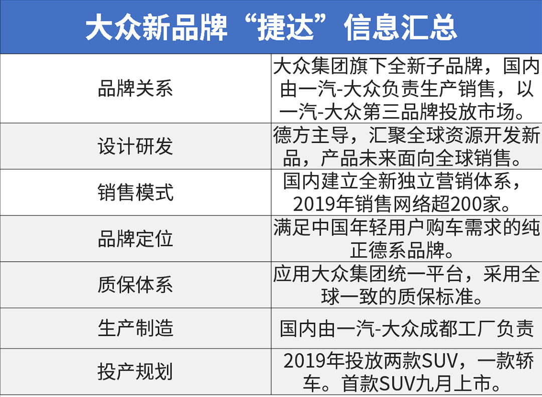 2月26日,大众在德国正式公布了全新子品牌“捷达”,也是首次将某款车型提升到品牌高度。今年捷达品牌会在华投放三款车型,均会在四月的上海车展上正式亮相,首款紧凑型SUV会在九月正式上市。以“皮实耐用,经济实惠”的捷达作为品牌名,是否代表着大众将以新品牌与不断上升的自主品牌们血拼性价比?