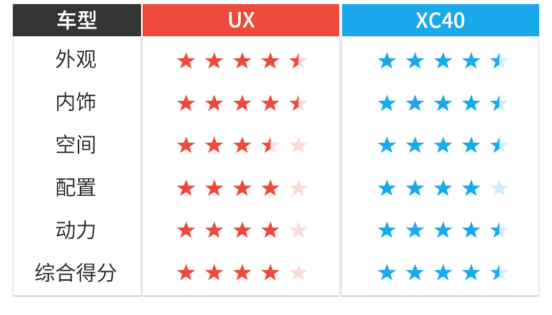 这两款豪华品牌紧凑SUV有个共同点是都针对年轻白领级别的消费群,不论是设计还是配置,都更多的考虑到80后、90后的需求。不过它们也完全不同,雷克萨斯UX就明显更适合90后,在颜值特别突出;而沃尔沃XC40则更适合有家有口的80后,各种功能都非常实用贴心。