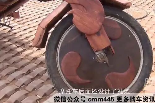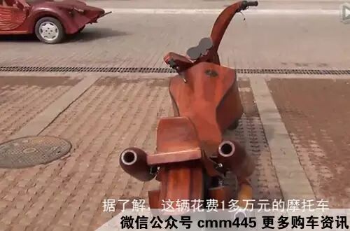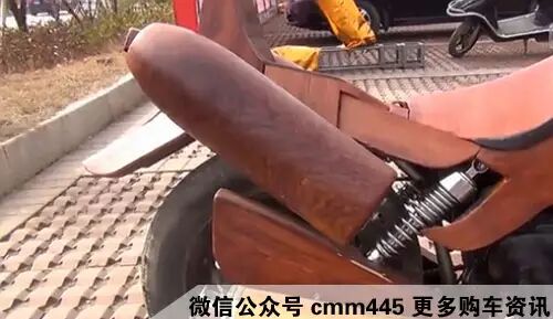 没错就是这辆摩托车,同样采用了红木,木雕师傅与其徒弟历时一个多月,花了一万多元人民币打造而成!!