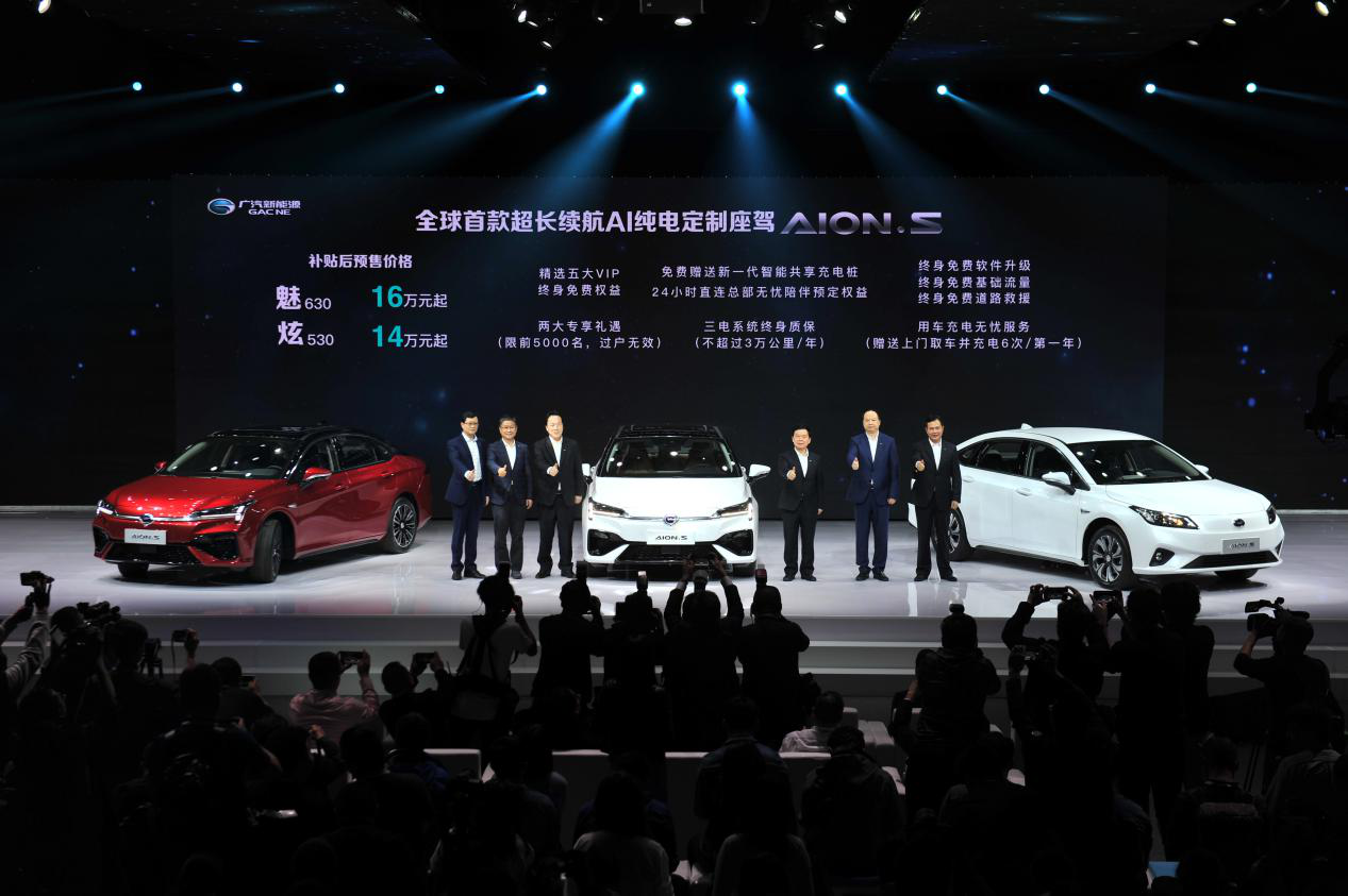 随后,广汽新能源副总经理肖勇宣布Aion S正式开启预售并揭晓预售价格。其中,Aion S 炫的预售价为14万元起,Aion S 魅的预售价为16万元起,更有多项车主预订权益及多个尊享车主套餐可享,涵盖五大VIP终身免费权益、三电系统终身质保及用车充电无忧等保障。