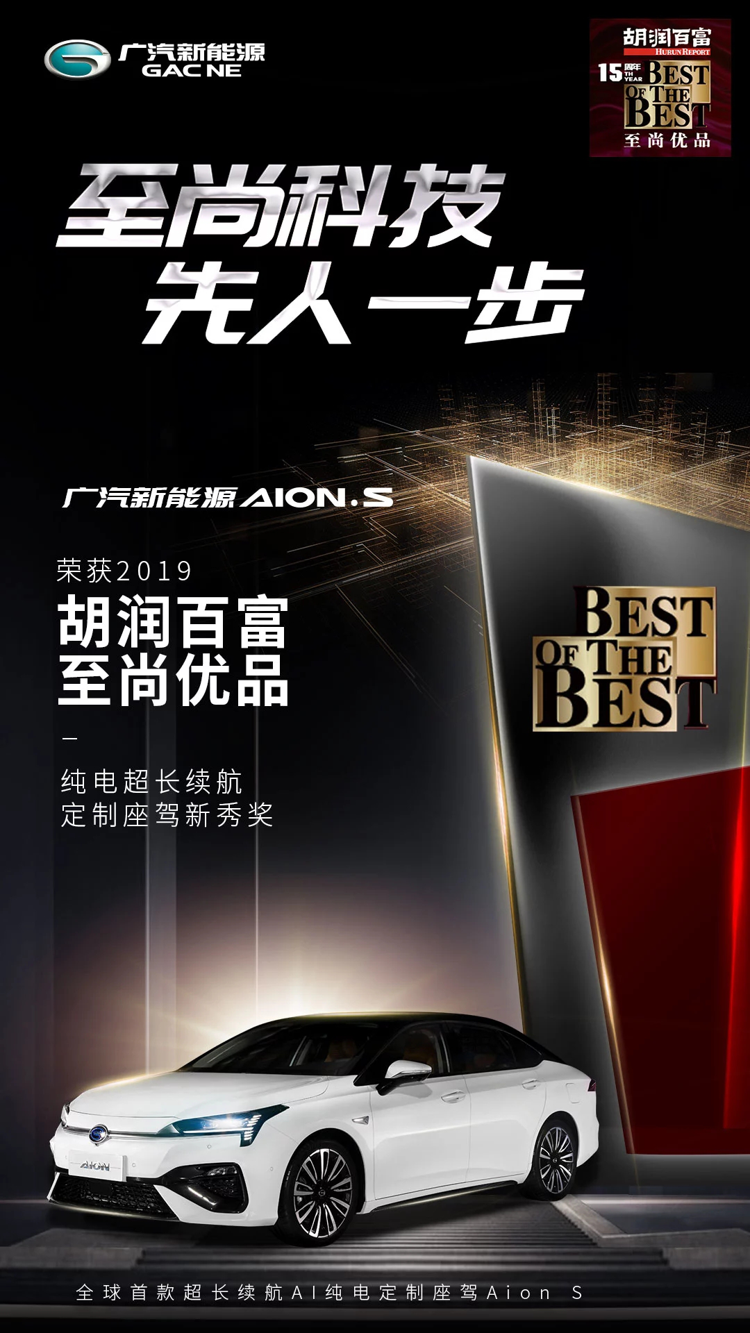 自2018年广州国际车展全球首发以来,Aion S就凭借全球领先的产品实力,受到了中外媒体高度关注和广泛赞誉。在今年1月胡润百富发布的《2019至尚优品——中国千万富豪品牌倾向报告》中,Aion S荣获“纯电超长续航定制轿跑新秀奖”,成为唯一得奖的中国汽车品牌车型,成为中国高端新能源车的“代言人”。