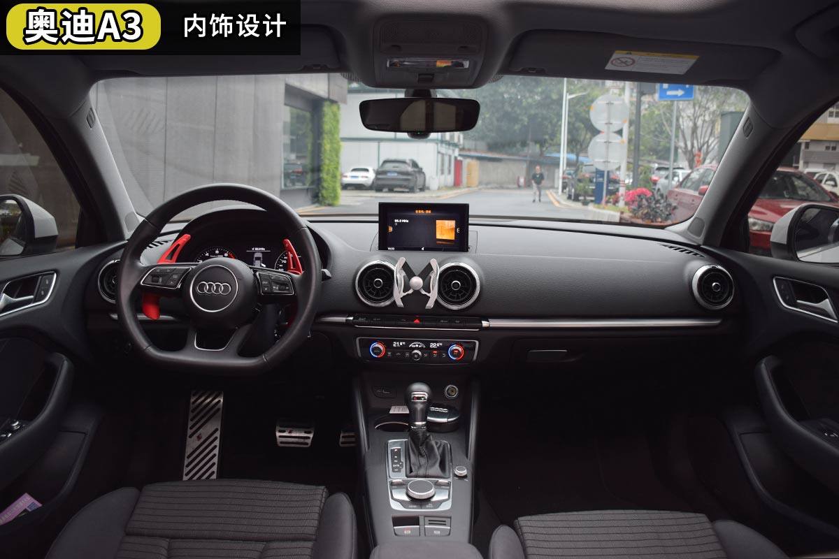 奥迪A3的内饰设计可以说非常简单了,车内也没有用太多豪华的用料来表露自己豪华品牌的身份,如果将方向盘的logo换成VW,似乎也没有违和感。