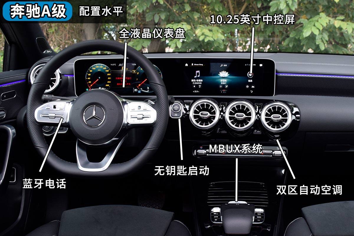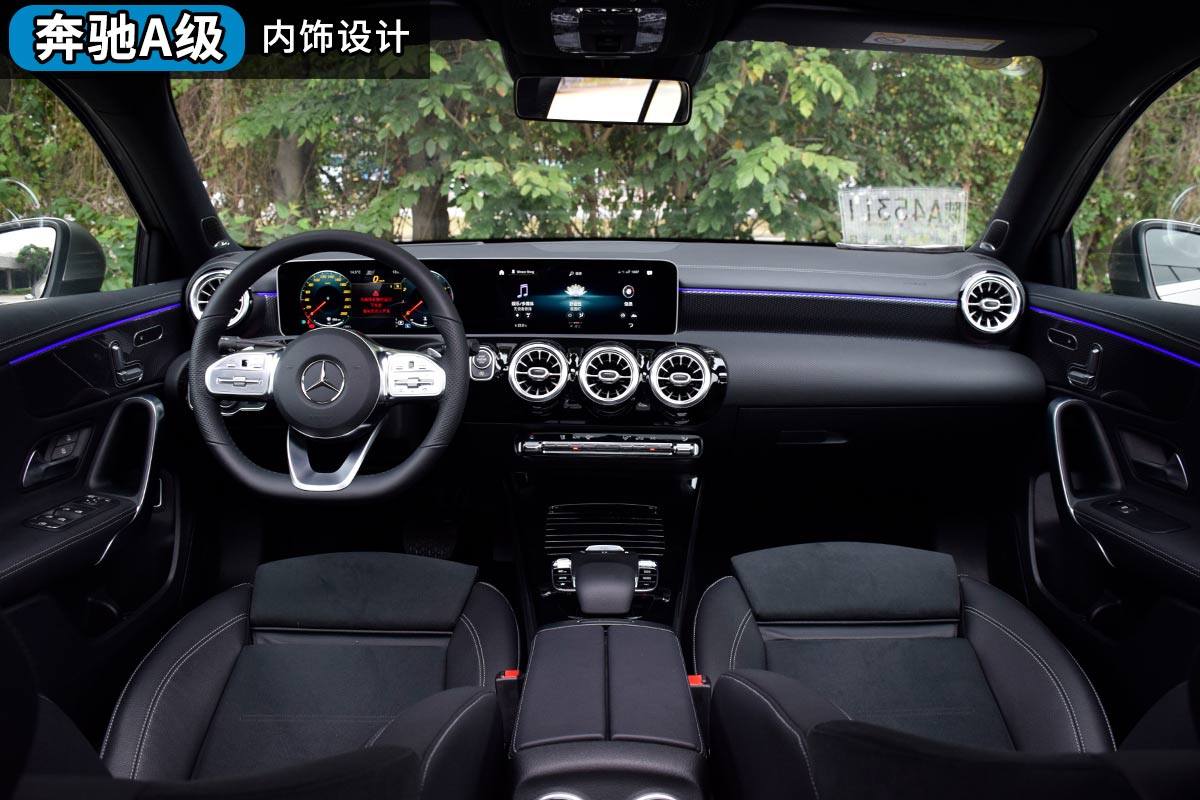 奔驰A级的这套内饰之高级,完全可以媲美豪华品牌更高一级的车型。双屏联动设计和游艇式方向盘的内饰连C级都没有用上。A级在车内使用大量的真皮做内饰包裹,这一点也是同级中用料最好的一个。