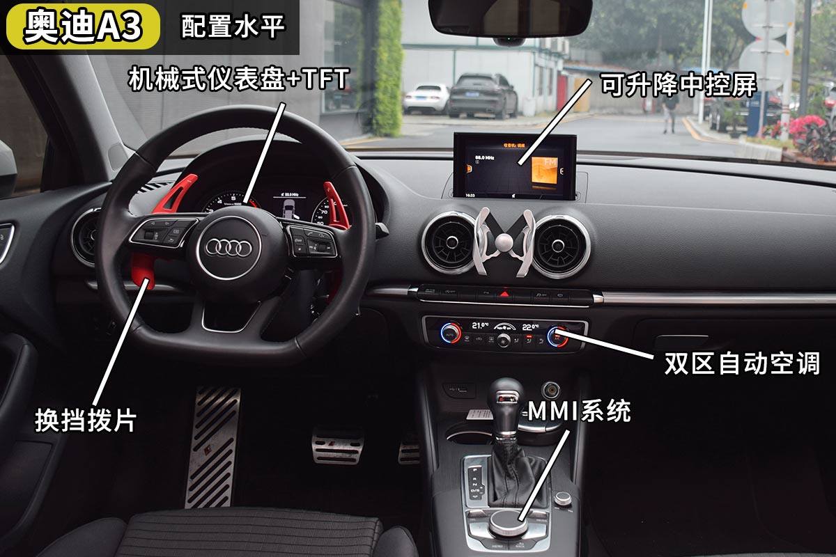 虽然奥迪A3的配置也不低,定速巡航、蓝牙电话、双区空调、换挡拨片、MMI等配置并没有缺席。但是奥迪A3的机械仪表盘既无宝马的信仰加成,更加无法跟A级那个功能丰富的液晶仪表盘相比。