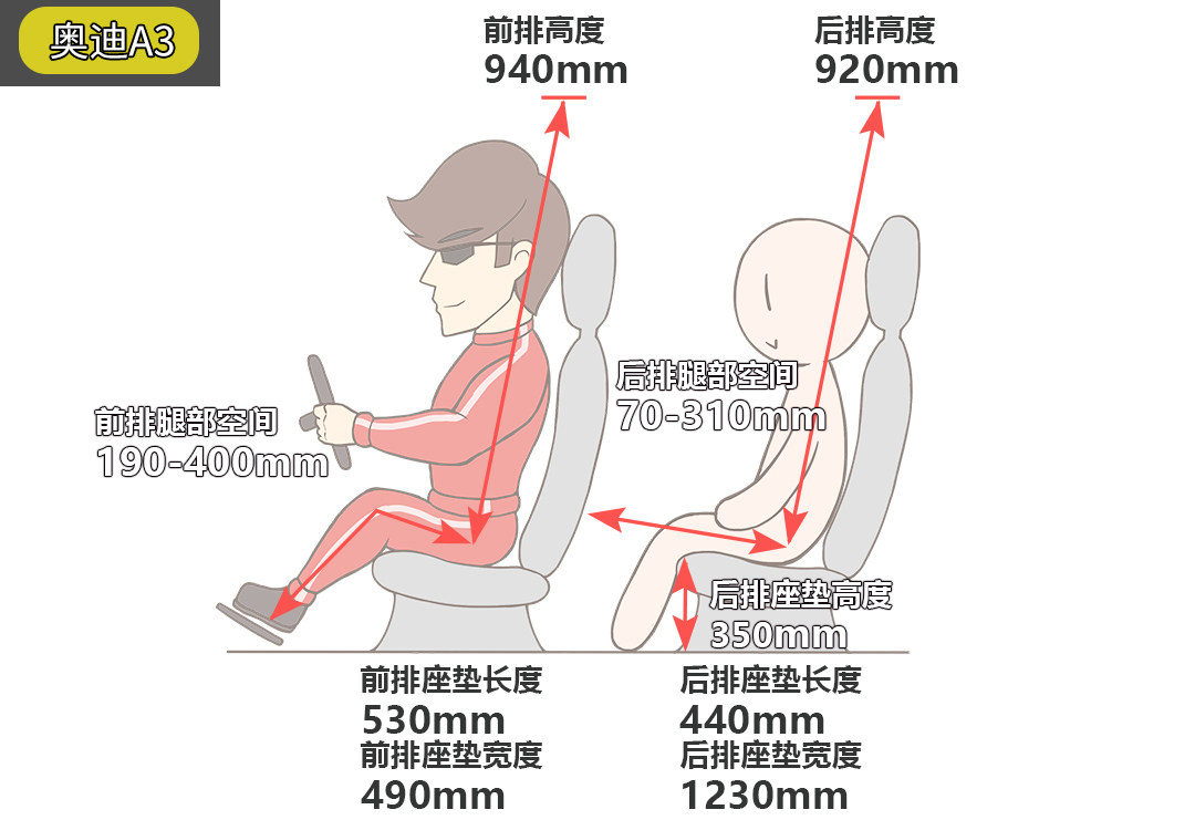 A3的后排乘坐空间最小,后排靠背也比较直,在乘坐空间和舒适性上并不是很好。