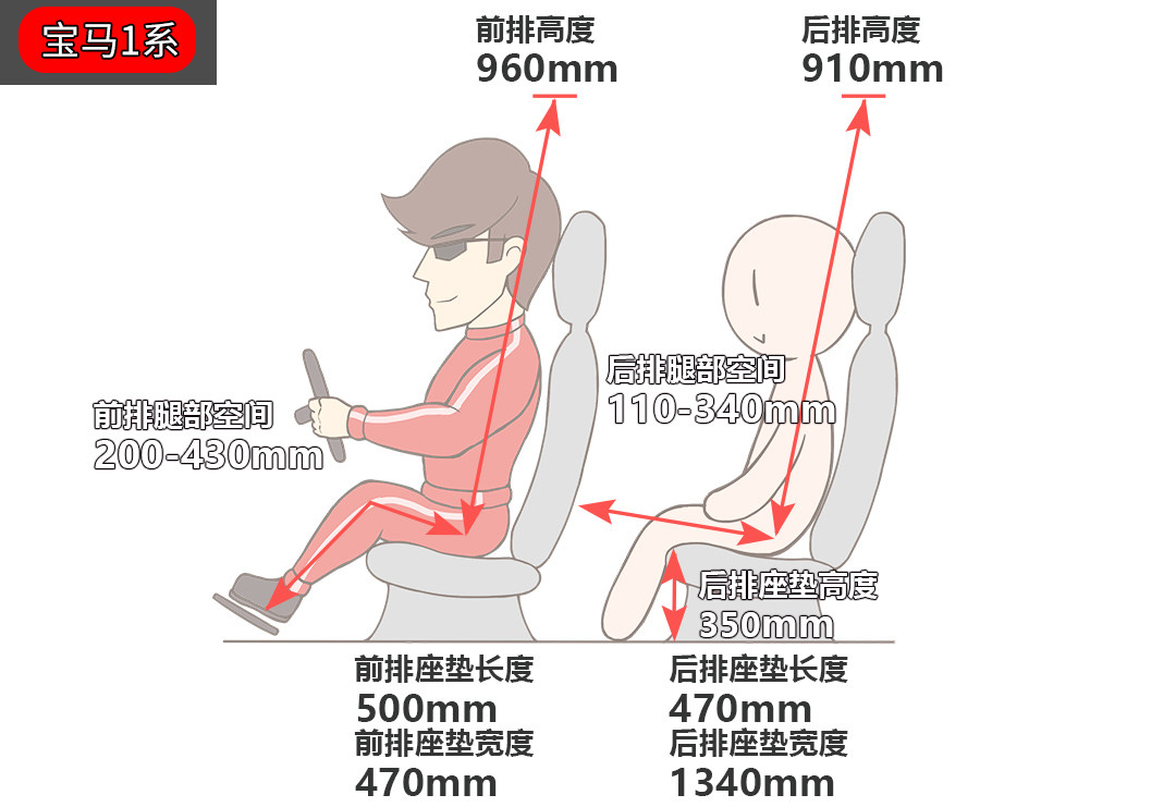 1系的头部空间比较大,坐姿最正常。从数据来看,1系的空间比A3大,但实际体验其实并无区别。1系有个优点就是后排座椅靠背角度比较大,乘坐比较舒适。