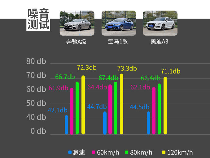 在隔音测试上,宝马1系毫无疑问垫底。其实这一点不奇怪,宝马1系为了保留路感,隔音差些无可厚非。