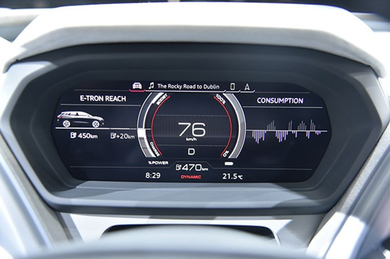 整体内饰还是熟悉的风格,数字虚拟舱的整合,12.3英寸的中控显示屏集成了许多的使用功能,并且可以切换到仪表盘。Q4 e-tron提供抬头显示功能,充电水平和导航显示等元素,都可以透射在前方的前挡风玻璃上,并且用于转弯的方向箭头等重要显示元素都可以直接显示出来。