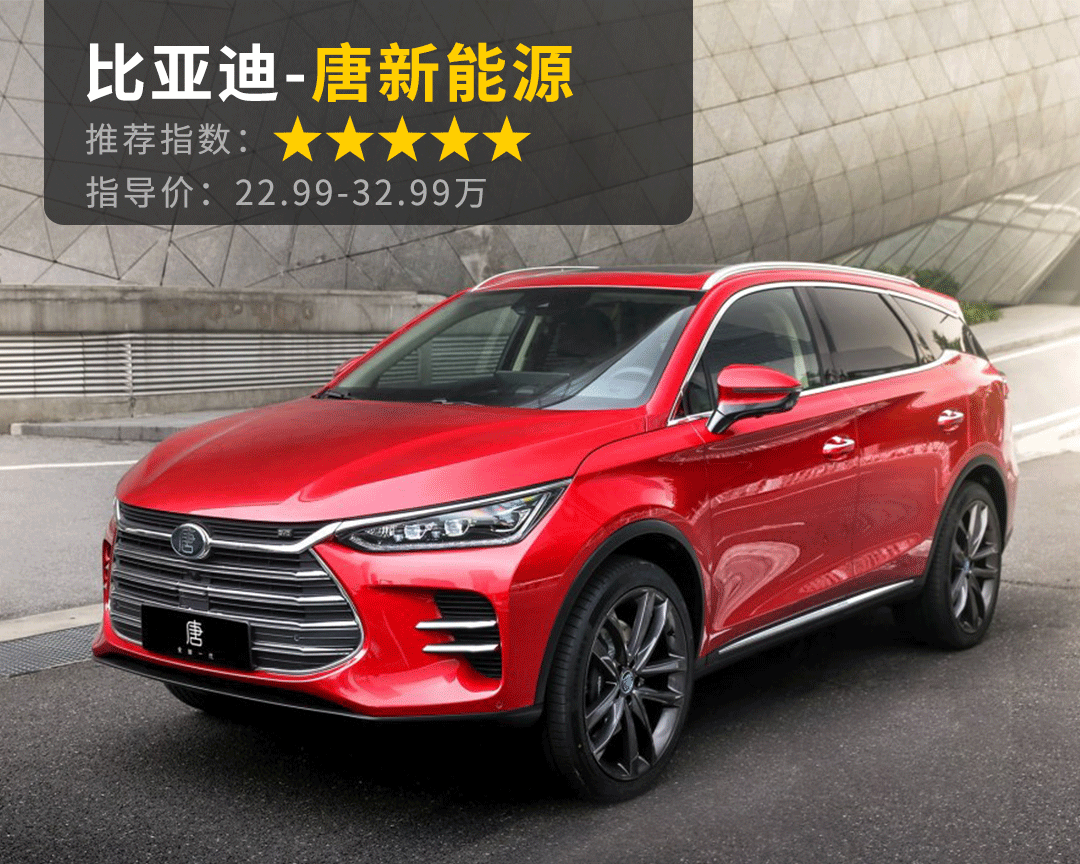推荐理由:插电式混合动力车怎么能不推荐自主品牌的骄傲比亚迪唐新能源呢?这一代的唐新能源在颜值上相比老款真的是脱胎换骨,感觉是瞬间从农村小伙变成了都市型男,而且205马力的2.0T引擎+综合扭矩950牛米的电机让它的百公里加速只要4.5秒,满电状态下虐一虐超跑都没问题。此外,纯电状态下续航达81公里,市区代步工况,每天晚上充一次电就足够明天一天使用了,不给五星推荐怎么行?