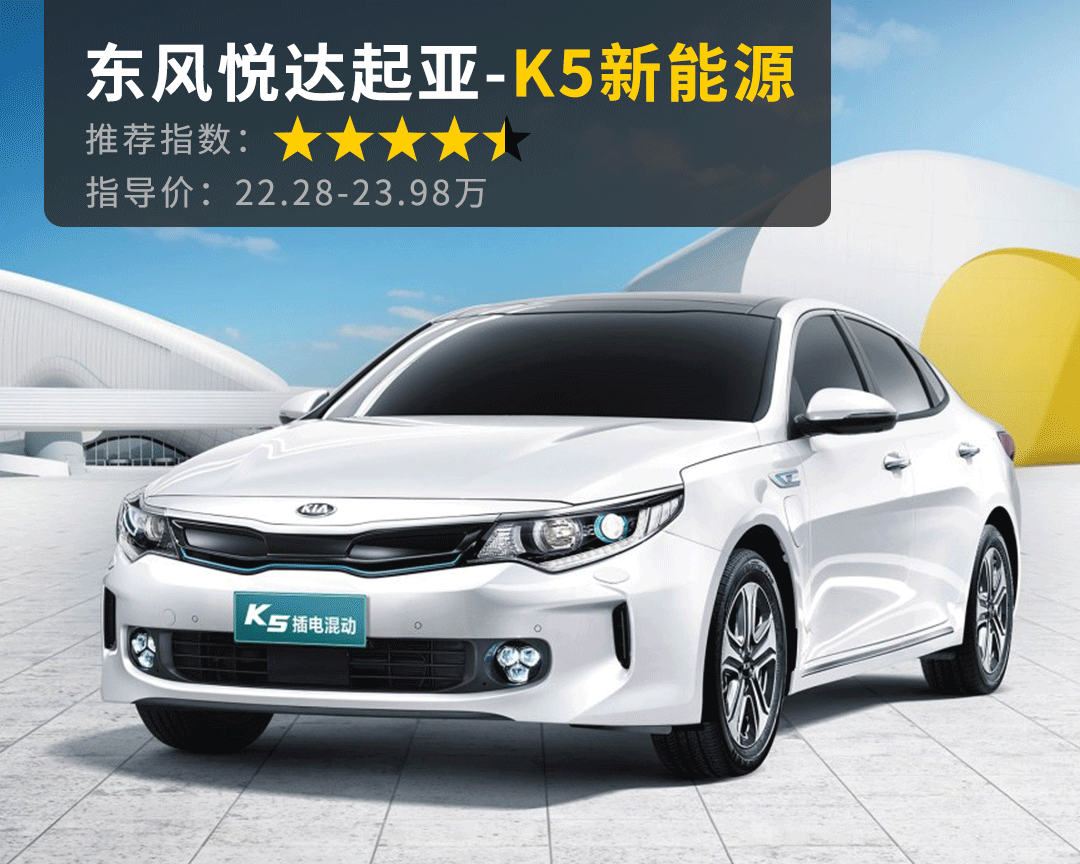 推荐理由:韩系车一直以来有着低价高配置高性价比的优良传统,起亚K5也不例外,这么大的一台B级插电混动车,指导价只要20万出头,比起要卖到28万起价的大众帕萨特新能源要划算多了,况且K5的纯电续航有75公里,不算小了,花低价买个大空间B级车以及开车上路的“路权”还是非常实惠的,纵使它的设计感以及跟不上时代,但给个四星半的推荐还是没问题的。