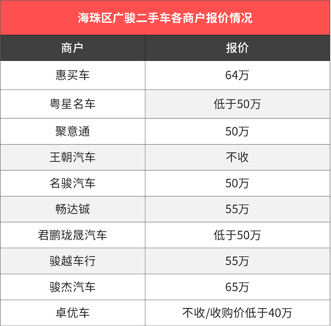 我们挑选了海珠区比较大型的二手车市场“广骏二手车”,在广骏二手车市场里扮做想出手75D的车主,挑选了十家收相近档次豪车的二手车行,看看他们能给我们这台75D一个什么样的价格。
