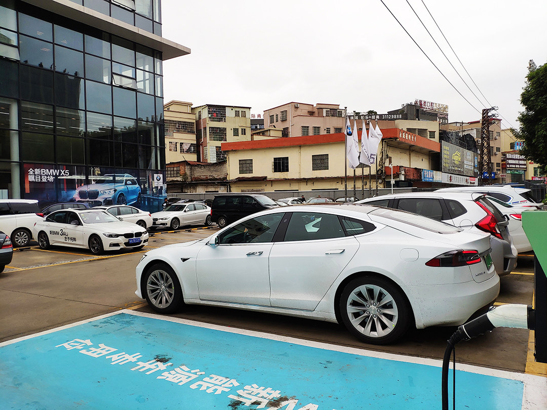 教授来到了海珠区创投小镇,这里有特斯拉专用的充电车位,周边的特斯拉车主都会选择来这里充电,教授此时扮作这台75D的车主,厚起脸皮疯狂搭讪。