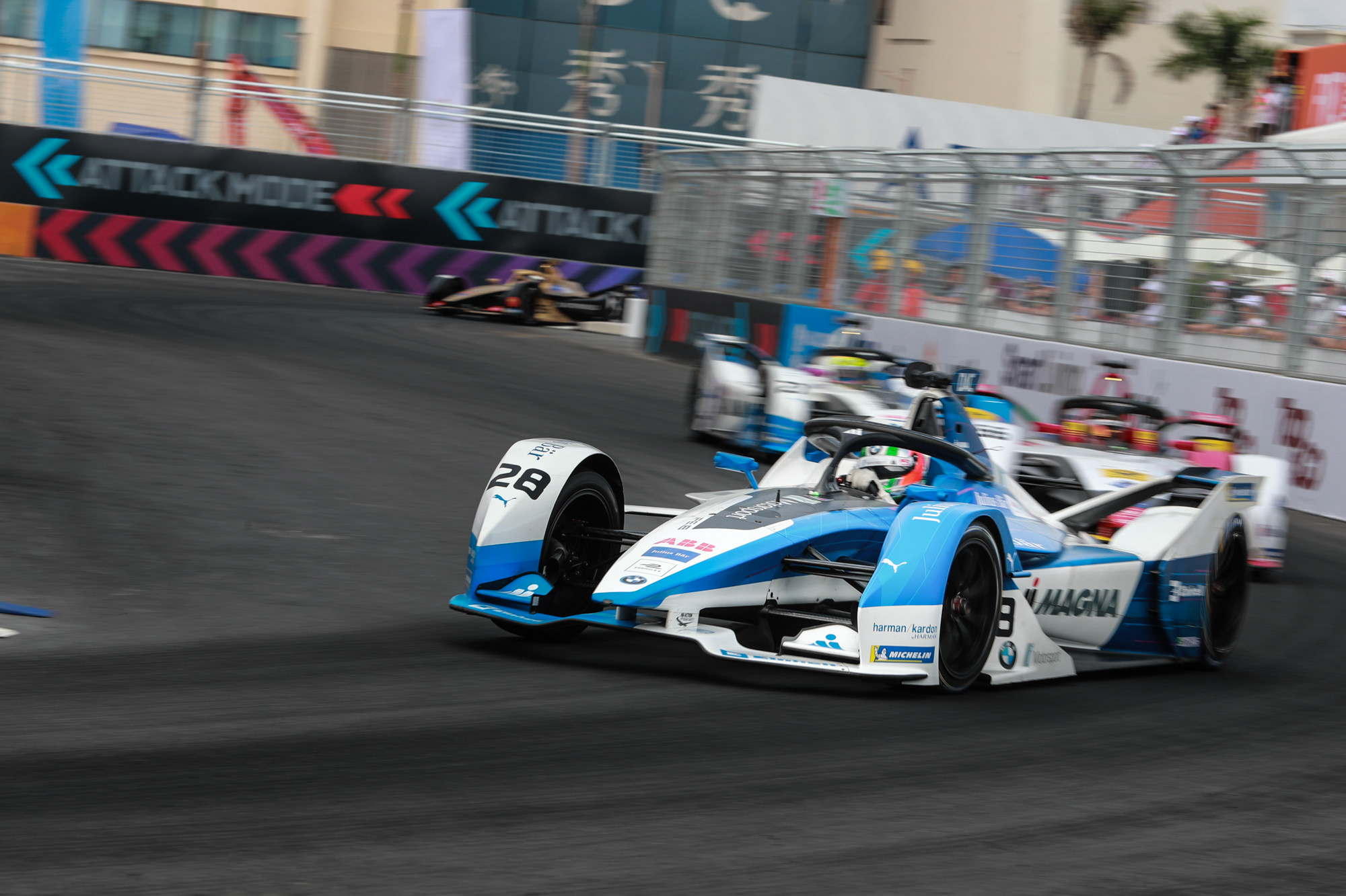 3月23日,2018/2019赛季ABB国际汽联电动方程式锦标赛第六站正赛在中国三亚开始。宝马车队在本次三亚站表现尤为抢眼,以卓越的排位赛成绩为正赛打下良好开端。正赛开始后,宝马Andretti车队车手Antonio Felix da Costa凭借精湛的驾驶技术助宝马车队一直保持领先优势,经过前35min并驾齐驱,宝马出众的BMS电池管理调校逐渐显露出拔群优势,以绝对优势保持至最后为车队贡献积分,同时个人积分跃升至车手排行榜第一。