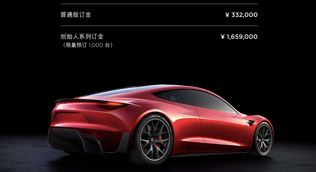 因为从预订的信息足以看出,165.9万元的创始人版本是限量1000台,这相比EP9那种只有十台八台、一两台的“模型摆件”式超跑根本就不是一个次元,而且要注意的是只有创始人版本是限量的,但订金33.2万的那辆普通版并没有数量信息,按照特斯拉的作风,一定是多多益善,来者不拒的。