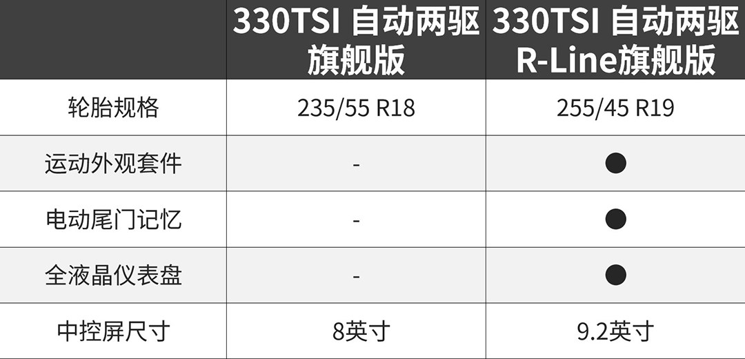 除了福特,大众也干了这事!途观L在2018年推出了R-Line版本,真新被帅到了。论坛上不少购买了途观L的车友都想后期更换R-Line包围,官方价格为10000+!教授再看一下配置表默默不出声。这么帅的包围错过了就算了,但是19寸的运动轮毂、全液晶仪表盘、高配的中控显示屏这些东西选配价格在12000左右,老车主看了心会滴血。之后还要再补一句R-Line套装还包括R-Line专属的平底运动方向盘和运动座椅!