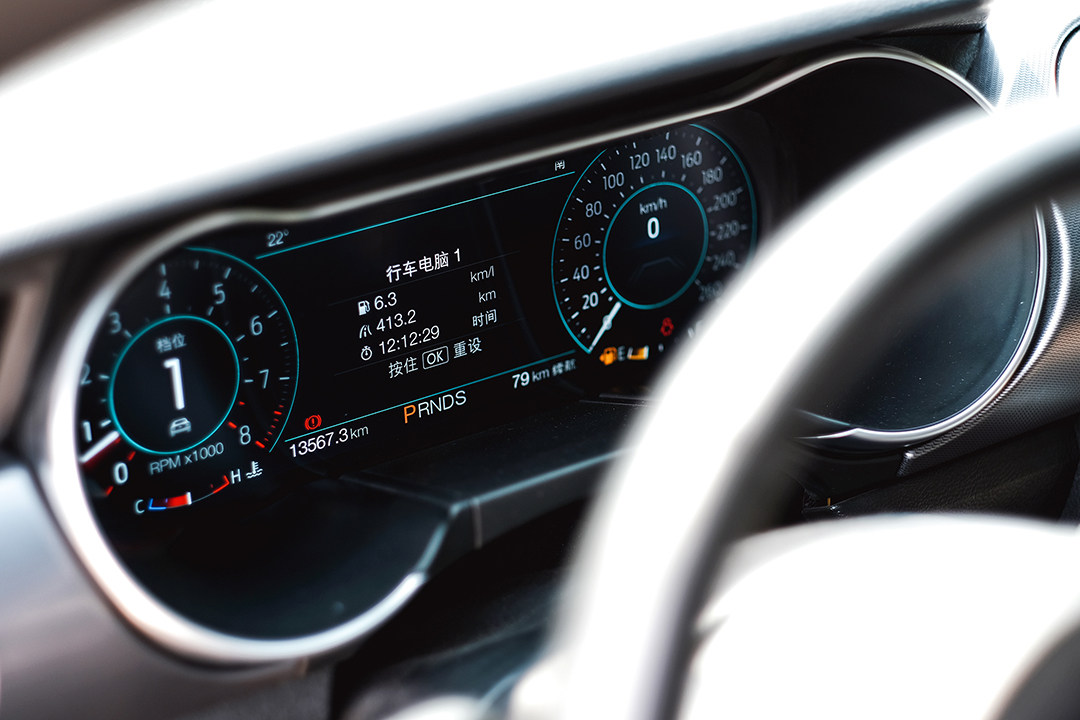 挂入D挡,松开机械手刹,V8引擎缓缓推动着1769kg的身躯向前移动,你会惊讶于安静模式下Mustang GT的温驯,不吵不闹,一切动作都是那么的轻柔。