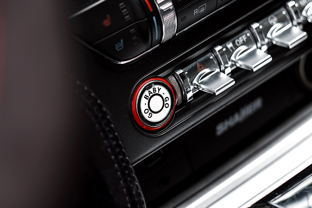车内的复古蜡皮精致细腻,与尾灯相互关联的白色条纹与《极速60秒》同款“Go Baby Go”按钮,都在体现着LJ对于细节的执着。