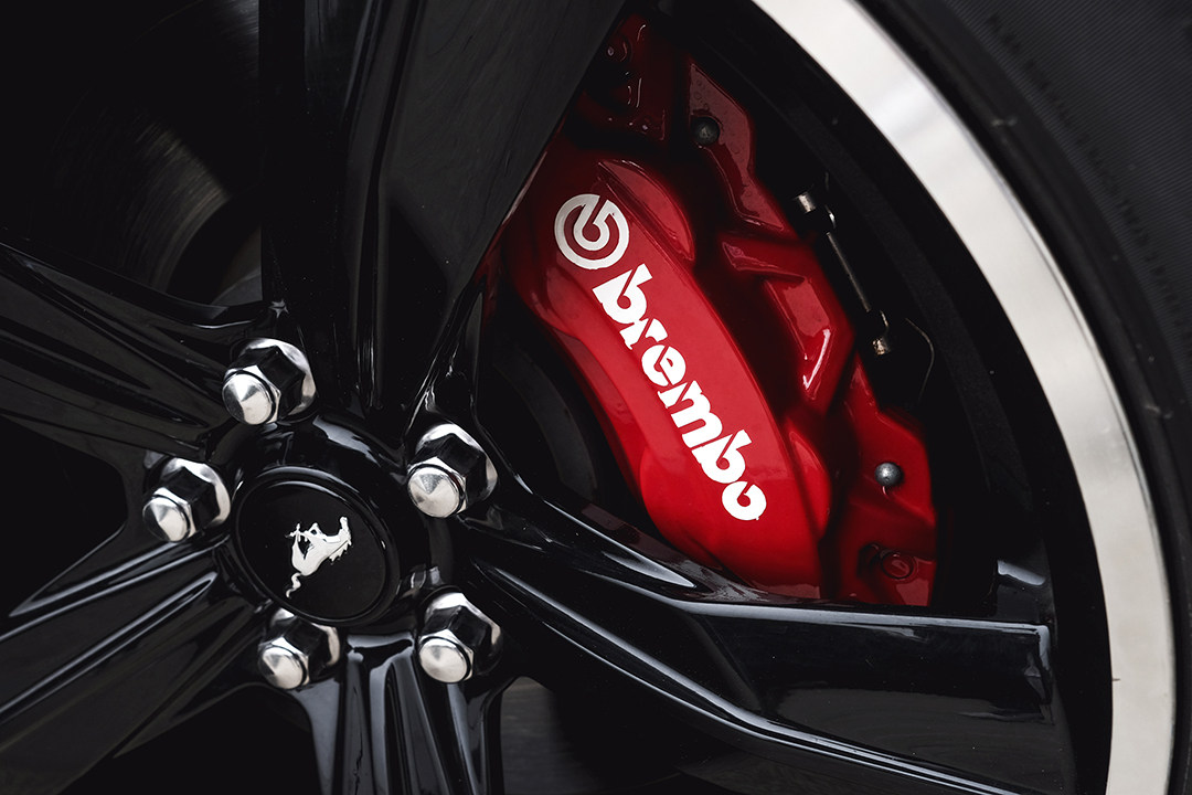 其中最为惹眼的,显然是那BULLITT特别款轮圈。为纪念Steve McQueen的经典电影《BULLITT》,福特从第四代Mustang开始推出BULLITT特别款车型,墨绿色车漆和复古五辐式轮圈让BULLITT成为Mustang系列中最具文化魅力的车型。