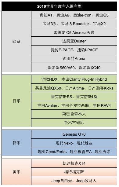 从去年开始就已经开始评选,从选候选车型共有数十款款竞选出,其实可以看到,这些都是市面上最为重磅的车型,主要有BBA、丰田车系、韩系以及新能源车型。