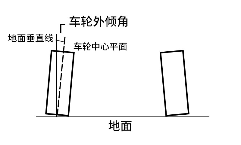 车轮外倾角是指车轮中心平面和地面垂直线之间的夹角,车轮上部向内,即为负倾角,车轮上部向外是正倾角。基本上,我们在市面上买到的乘用车都是负外倾,也就是呈内八的姿态。车轮呈现负外倾角在转向的时候车轮抓地力更强(前提是地面是平的)。