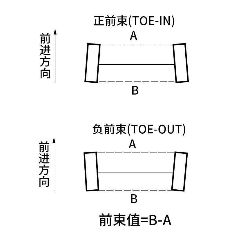 99%的车型前束角是正的,正前束角也叫toe-in。toe-in的话,前轮的转向就没有那么灵敏,留下一定的虚位,这样的话,在车主下意识摆动方向盘的时候车辆不至于太过灵敏。