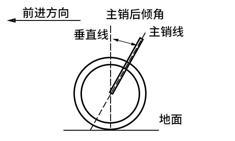 主销后倾角是指。主销后倾角越大,直行性能越好,但是不是越大越好,主销后倾角过大会导致转向力度过大,不容易转动方向盘。如果遇到车辆转向手感变重或者在直行的时候很容易摇摆不定,那就可能是主销后倾角出现问题。