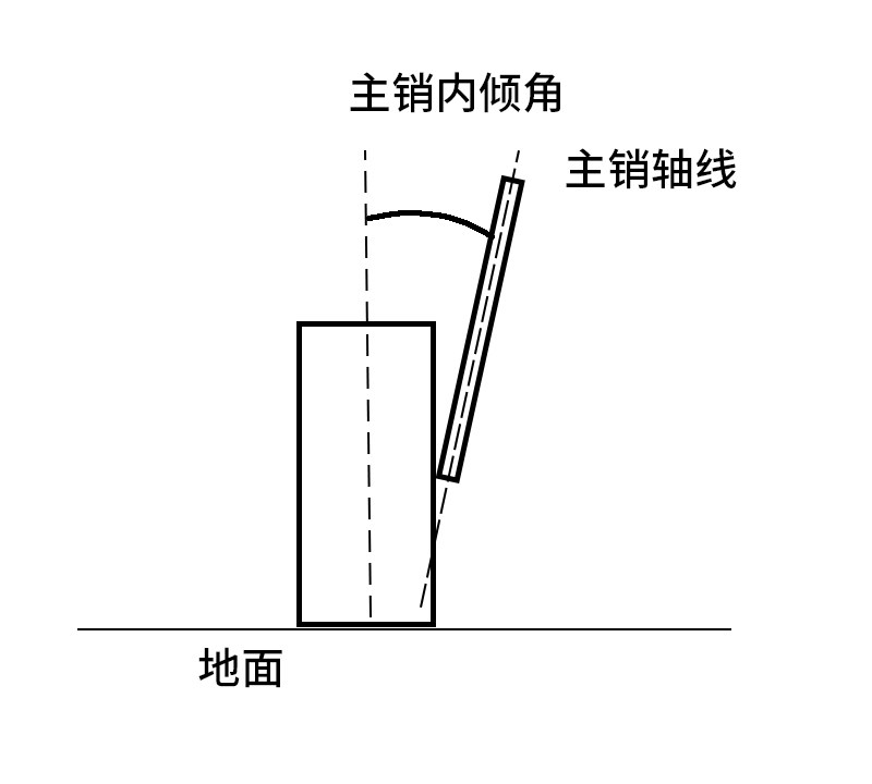 主销内倾角是指前轮的主销轴线跟地面垂直线之间的夹角。主销内倾角跟主销后倾角一样都是跟回正力矩有关系。主销内倾角越大,转向阻力越大,回正力矩也越大