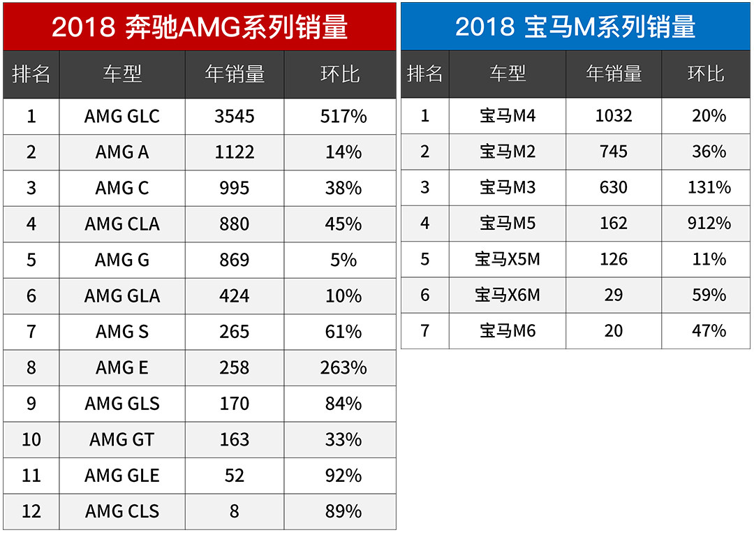 这同时意味着依然有很大的市场可挖掘,譬如最热门的BBA性能系列,去年最热卖的M2销量为7百多辆,M4刚刚破千,整体来看,一千是个瓶颈;奔驰的AMG系列好一点,GLC比较突出 、虽然A级、C级都AMG较好,但1千依然是个瓶颈。