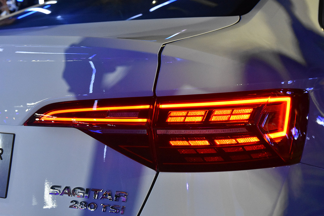 尾部也让人感到熟悉,还带有了小鸭尾扰流板以及双边共双出排气设计(虽然实际为隐藏式排气)。不过一旦亮起尾灯,流水式尾灯绝对能让你眼前一亮,再次说一句“这车看起来真高级!”值得一提的是,这次速腾依然带有R-line车型可供选择。