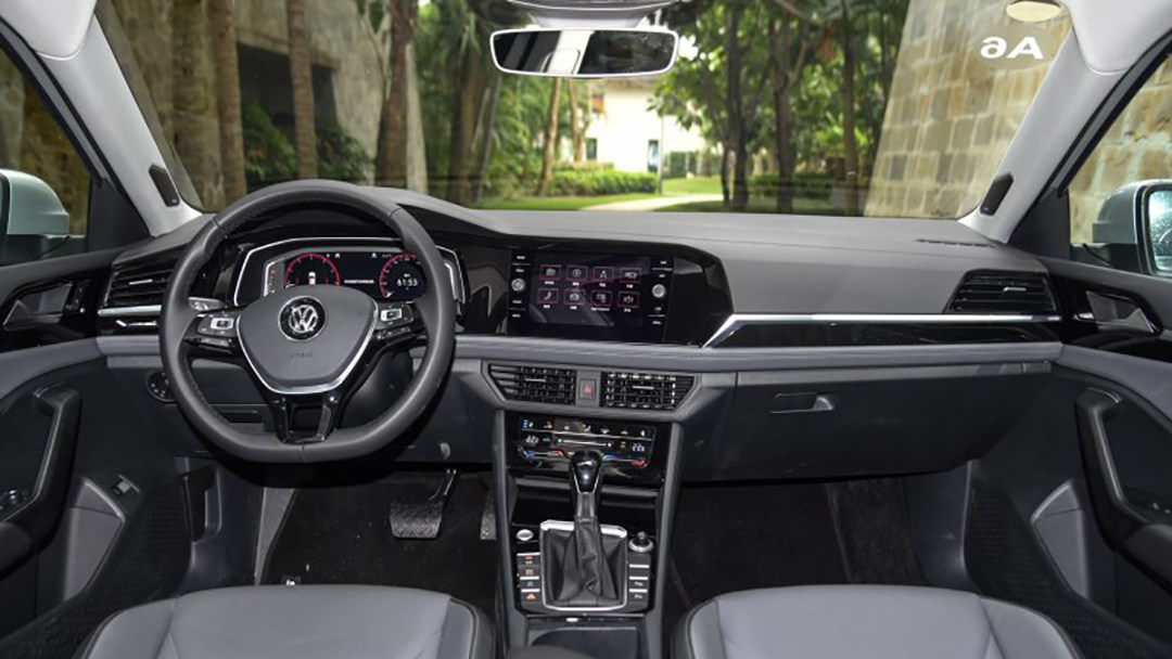 全新速腾也采用最新、向驾驶员一侧倾斜的中控台设计,这种设计也同样在宝来、探歌上出现,略显新鲜感不足。但速腾事实却在细节上做到了创新,例如采用了宝来所没有的全液晶仪表盘,还有全新设计的挡把,更为重要的是这次还带有氛围灯,这次你终于把梦寐以求的女生载到一个无人的幽暗之地,然后告诉她,“看,我全新速腾内饰可是会发光的!还是很多颜色那种!”