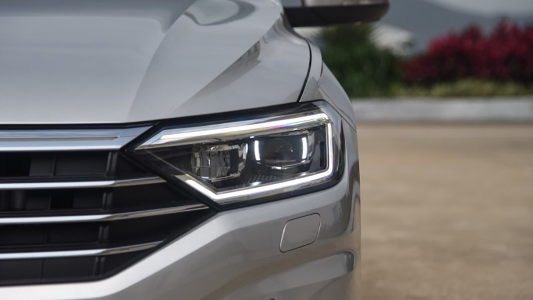 初见全新速腾,你可能会觉得有种熟悉感,它采用了T-roc探歌、全新宝来上的家族式设计,包括了那以镀铬装饰连贯LED大灯的六边形进气格栅,前脸所大量使用的横向线条拉伸了其视觉宽度,而它事实也有着同级较宽的1800mm宽度。