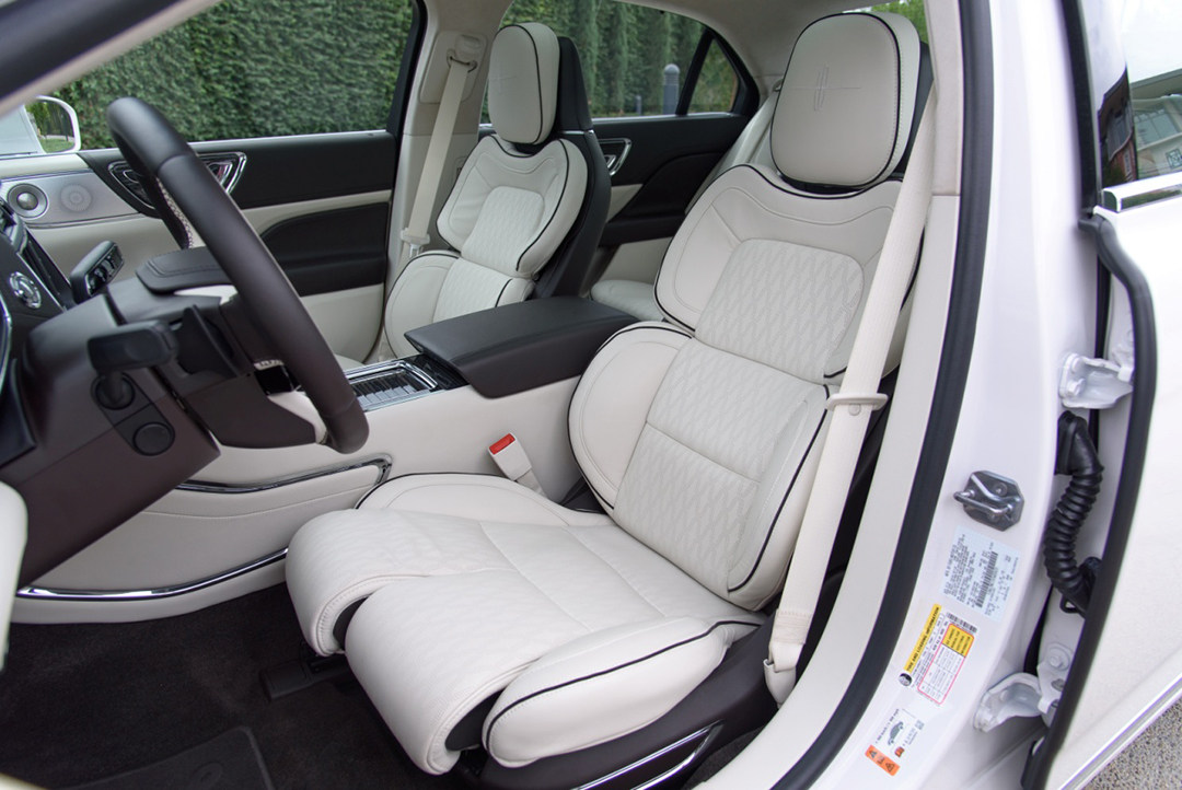 但最引人注意的还是前排的两张40向调节真皮座椅,不仅能够对身体各部分提供非常到位的支撑,坐垫材质更有如高档沙发般柔软舒适,再加上同样宽大、柔软的后排座椅以及后排“U”型头枕,林肯大陆的内饰舒适性在这个价位几乎无车能敌。