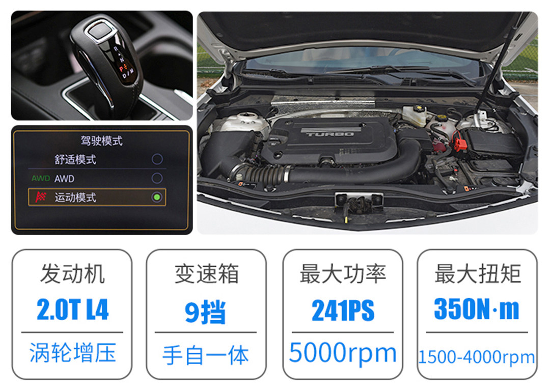 本次对比的三款车型均搭载2.0T涡轮增压L4发动机,而凯迪拉克XT4则是其中动力数据“较弱”的一款,241匹马力和250牛·米的峰值扭矩表现还算出色,搭配9AT手自一体变速箱和四轮驱动系统能够实现7.8秒的0-100km/h加速成绩,无论在加速性能还是在日常行驶的平顺性表现都是相当出色的。